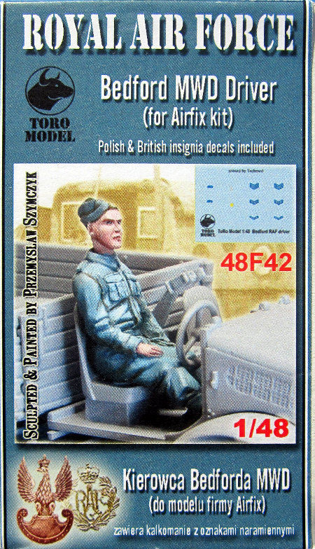 Die kleine Firma Toro Model aus Polen produziert immer wieder interessante Neuheiten im Maßstab 1/48. Die Tiere und zivilen Figuren sind dabei oft sehr ansprechend gestaltet. Ein weiteres Thema dem sich Tomasz Mankowski gerne widmet sind die polnischen Streitkräfte. Dieser Satz enthält einen Fahrer für den Bedford MWD von Airfix (First Look), der sowohl mit britischen als auch mit polnischen Uniformabzeichen dekoriert werden kann.