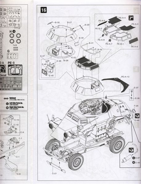 Ich meine das Warten hat sich gelohnt, so wird nun endlich das aus den siebziger Jahren stammende Modell von Tamiya abgelöst. Gut gefallen mir die Ätzteile, die gleich in zwei stärken geätzt wurden. Die etwas stärkeren- für den Rahmen der Turmgitter und die etwas dünneren Ätzteile für die Gitter. Die beiliegenden Decals erlauben das Markieren von drei Versionen und beinhalten auch die Skalen für die Instrumente. Das Fahrzeug verfügt über eine gute Inneneinrichtung. Verschieden Bauteile wurden schon bei der Herstellung mit Öffnungen (Flakrohr)oder Vertiefungen (Magazin s. detail Foto) versehen. Über die Qualität und Passgenauigkeit der einzelnen Bauteile brache ich hier nur wenig sagen, eben Tristar - Qualität! Der Zusammenbau des Spähwagens dürfte ohne größere Problem anhand der 10- seitigen Bauanleitung durchzuführen sein, sowohl für Anfänger als auch für Fortgeschrittene Modellbauer.