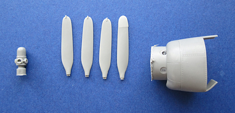 Spinner und Propellerblätter sind etwas besser. Der kleine Steiger an den Blättern ist kein Problem und besser als Luftbläschen im Blatt. Der Versatz an Blatt 4 ist da schon weniger leicht zu vernachlässigen, aber auch kein kriegsentscheidendes Hindernis. Hier ist der Satz also o.k. .