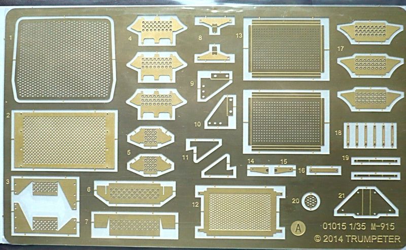 Bausatz: Aus den weit über 500 Teilen im prall gefüllten Karton lässt sich mit einer Länge von ca. 49 cm ein schon recht imposant wirkendes Modell des M915 mit Trailer bauen. Die sauber in grau gespritzten Plastik- und Klarsichtteile verteilen sich auf 15 Rahmen. Des Weiteren finden sich im Karton ein Ätzteil und ein Abziehbilderbogen.