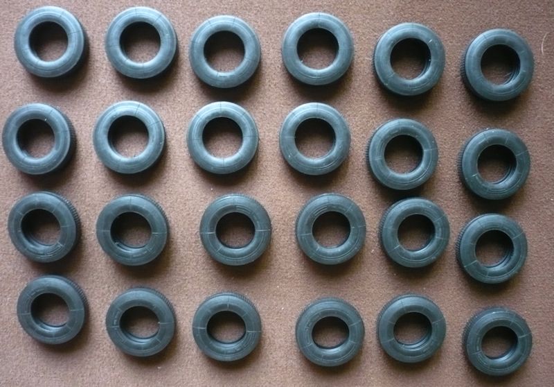 Die Bereifung besteht aus 24 gleichartigen Vinylreifen, innen hohl und mit einem ordentlichen Profil versehen.