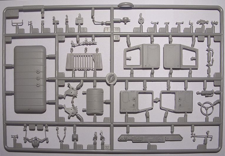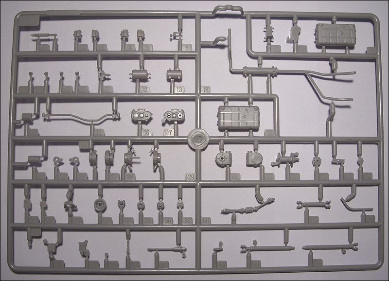 Die Spritzgussrahmen sind einzeln oder zu zweit in Kunststofftüten eingeschweißt, auch die Großbauteile. Grat war keiner zu finden. Auswerfermarken, so überhaupt vorhanden, liegen entweder an später nicht sichtbaren Stellen oder sind leicht zu bearbeiten.