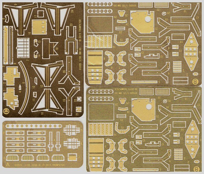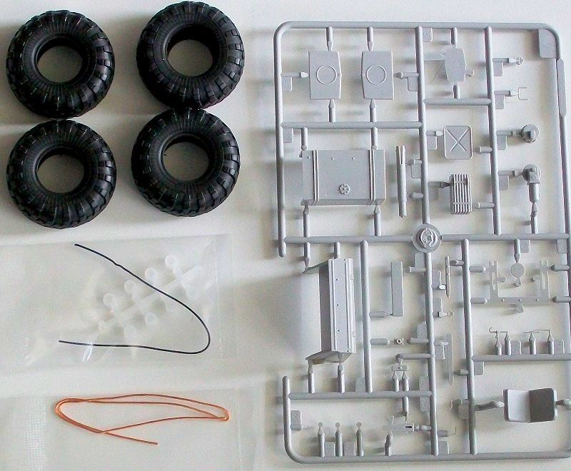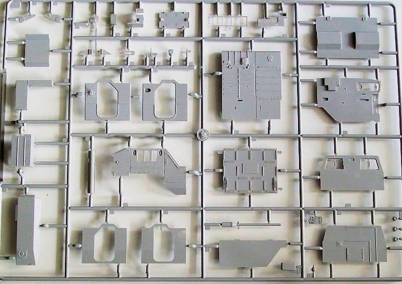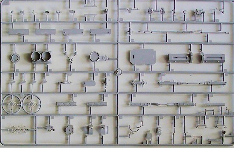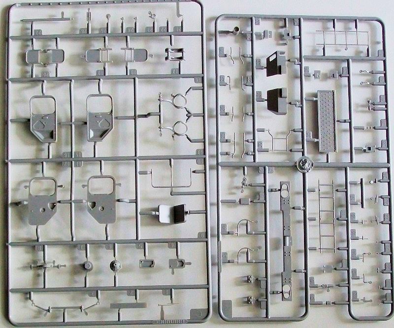 Die Gussäste haben sauber und wie immer filigran gespritzte Teile. Die Ätzteile sind auf drei Platinen verteilt. Daneben gibt es noch ein paar Klarsichtteile für die Fenster und Scheinwerfergläser.