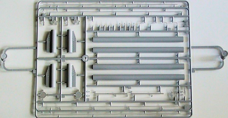 Bausatz: Der Kit wird in einem stabilen Karton geliefert, wobei empfindliche Teile zusätzlich in einem kleineren Karton im Karton verpackt sind. Der Bausatz hat über 950 Einzelteile, was bei einer Länge von 289 mm und einer Breite von 108 mm kein Wunder ist.