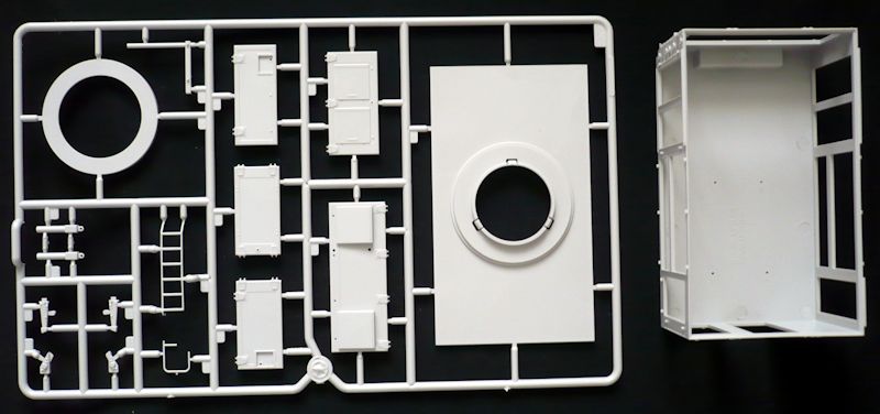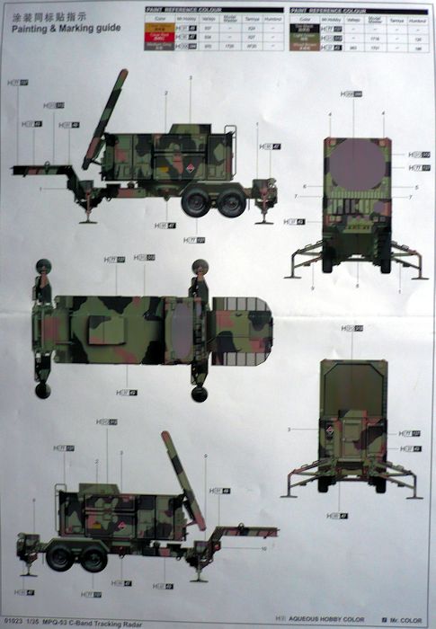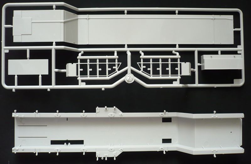 D Der Bausatz besteht aus ca. 410 Teilen. Diese befinden sich auf den 18 Spritzgussästen. Trailerober- und Unterteil, Radargehäuse, vier Vinylreifen, ein Bogen Fotoätzteile sowie ein Abziehbilderbogen vervollständigen den Bausatz. Sämtliche Teile sind präzise und detailreich wiedergegeben.