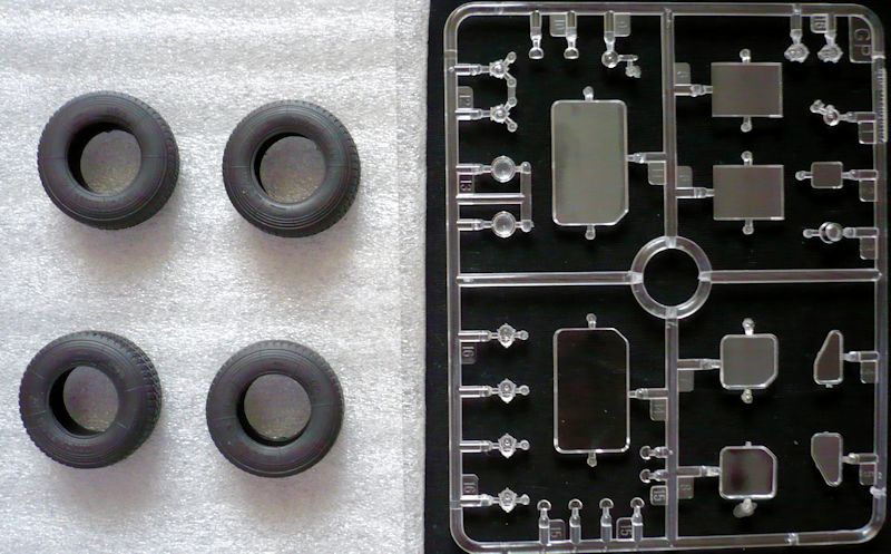 Die Reifen aus Vinyl weisen ein authentisches Profil auf. Der reichhaltige Klarsichtteileast ist schlierenfrei gegossen. Hiervon finden nur die Rückleuchten Verwendung. Die Materialstärke ist sehr gut.
