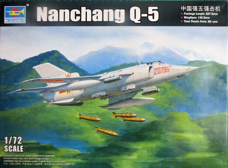 Vorbild: Die Nanchang Q-5 (Exportbezeichnung A-5) entstand in China auf Basis der in Lizenz gebauten MiG-19 (J-6). Dafür wurde das Flugzeug gründlich überarbeitet, denn die MiG-19 hatte durchaus Potential. So wurden die beiden seitlichen Lufteinläufe eingeführt und somit wurde Platz für ein zentrales Radom geschaffen. Somit hatte man immerhin eine Option um ein Radargerät einzubauen. Der Erstflug des Prototyps war am 04. Juni 1965 in Nanchang. Bis 1992 entstanden ca.1000 Flugzeuge. Etwa 150 gingen in den Export. Diese wurden mit Schleudersitzen von Martin-Baker ausgestattet und hatten auch eine verbesserte Ausrüstung. (V.H.)