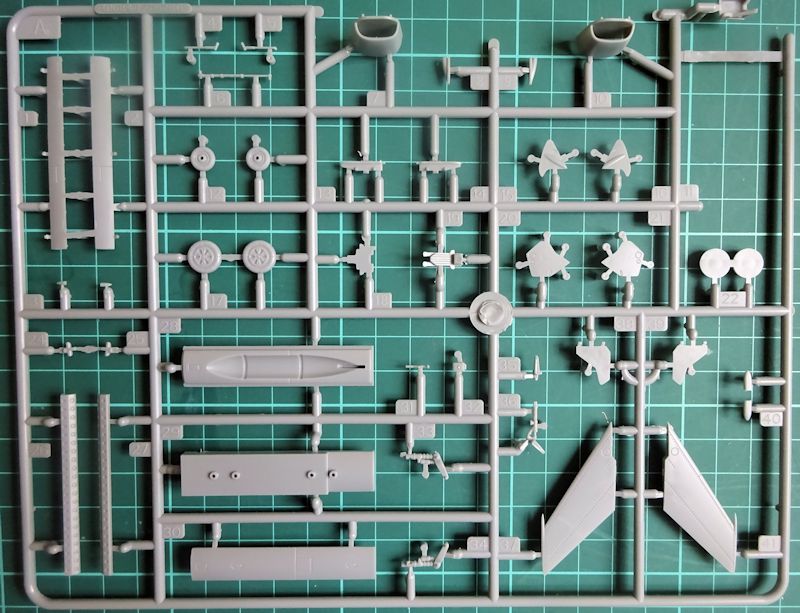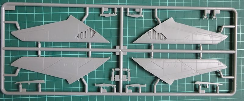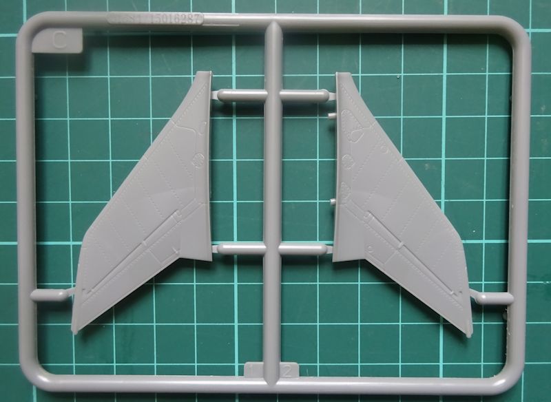 Die sauber gravierten und gegossenen Teile sind bis auf das zweiteilige Seitenleitwerk (J) alte Bekannte.