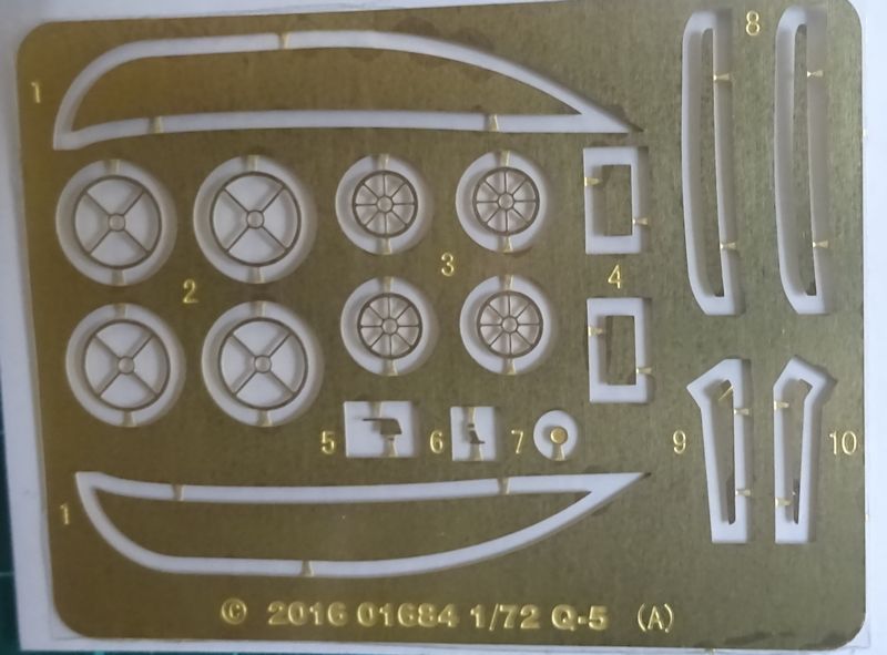 Bausatz: Den Q-5C und Q-5Yi folgte rasch die Standardausführung Q-5. Der stabile Karton enthält fünf graue und einen Klarsichtast mit 90 Teilen, eine Ätzplatine, Abziehbilder und die Bauanleitung.