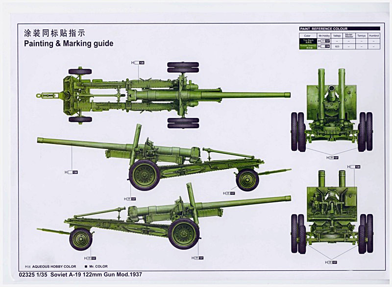 Geschichte: Die A-19 Kanonen entstanden, indem man das 122 mm Rohr in die Radlafette der 152 mm Haubitze ML20 setzte. Eingesetzt wurden diese Waffen in der Korpsartillerie und den Artillerie Divisionen der roten Armee. Sie wurde zwischen 1939 und 1946 in großen Stückzahlen produziert und versah auch lange nach dem Ende des zweiten Weltkrieges in der Sowjetunion und dem Warschauer Pakt Ihren Dienst.