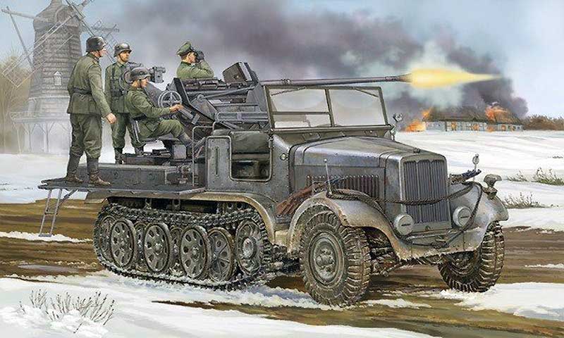 Geschichte: Das Sd.Kfz. 6 war ein Halbkettenfahrzeug der deutschen Wehrmacht und wurde während des gesamten Krieges eingesetzt, obwohl die Produktion bereits 1941 zugunsten sich bereits in Planung befindlicher preiswerterer und weniger arbeitsintensiver/aufwändiger Halbkettenzugmaschinen aufgegeben wurde.