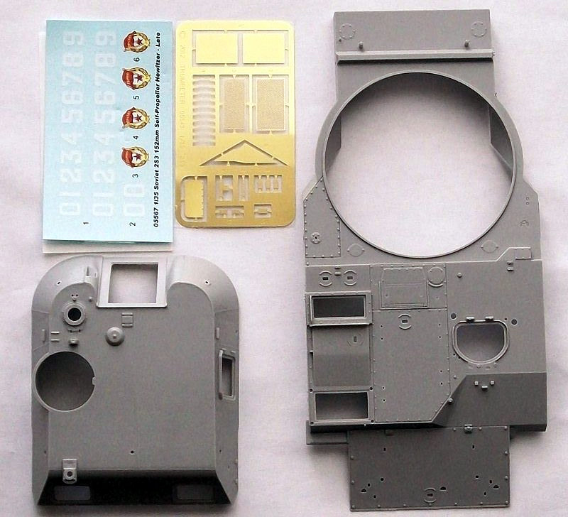 Bemalungsvarianten: Als Abziehbilder sind Nummern von 0-9 und Gardeabzeichen vorhanden. Der farbige Bemalungshinweis zeigt nur ein Fahrzeug in Russischgrün ohne Kennzeichen. Hier muss der Modellbauer wohl auf Bilder und Bemalungshinweise in der einschlägigen Literatur zurück greifen.