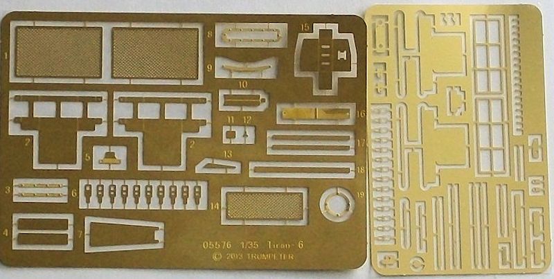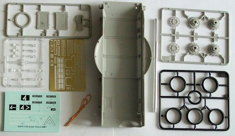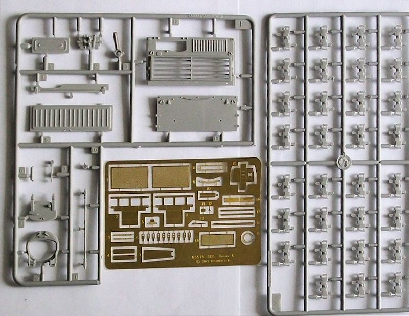 Für die Ketten sind Einzelkettenglieder vorhanden. Zwei kleine Platinen mit Ätzteilen fehlen natürlich auch nicht. Zusätzlich liegt ein gedrehtes Aluminiumrohr für die Kanone bei. Der Bauplan ist ausführlich und übersichtlich.