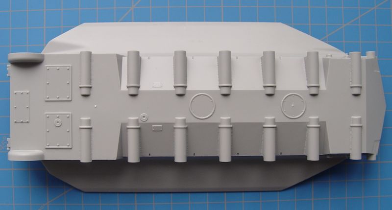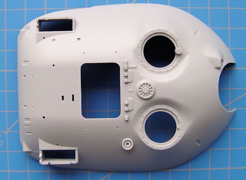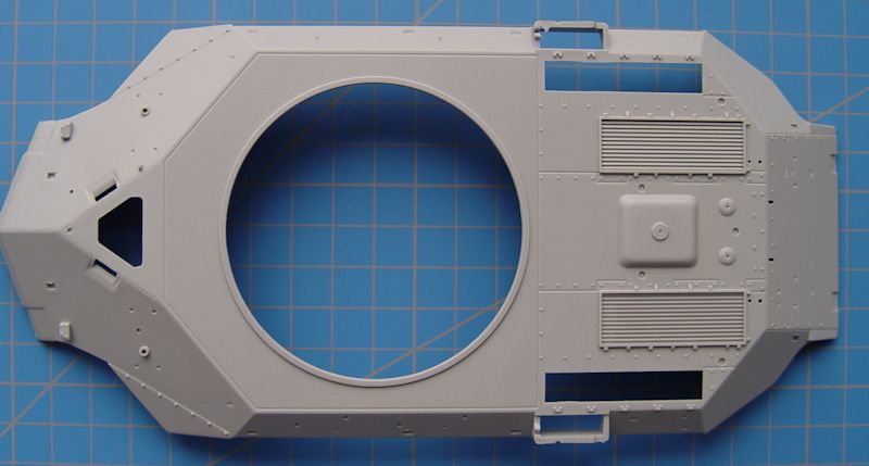 - Unterwanne, Oberwanne und der Panzerturm sind je ein Bauteil. Das ist gut für die Stabilität und beschleunigt den Bau. Die dargestellte Gussstruktur des Turmes könnte noch ein wenig verbesset werden, ebenfalls die nachgebildeten Schweißnähte.