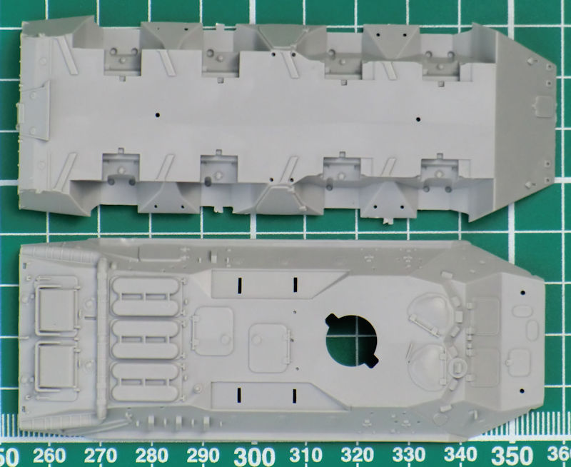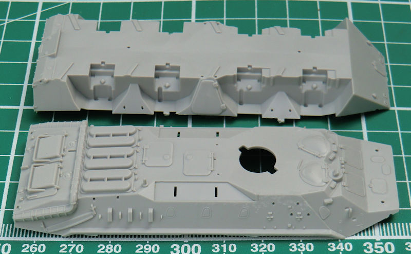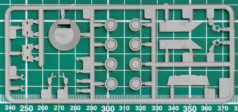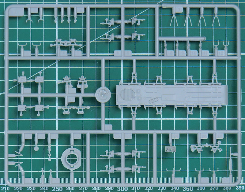 Auf dem ersten Blick sind die Bauteile voll auf der Höhe der Zeit. Es gibt feine Strukturen und gute Details. So ist die Fahrzeugunterseite schön gestaltet und bietet auch anspruchsvollen Modellbauern etwas. Leider bleiben alle Klappen/Luken zu. Dafür gibt es z.B. einen einzelnen Benzinkanister.