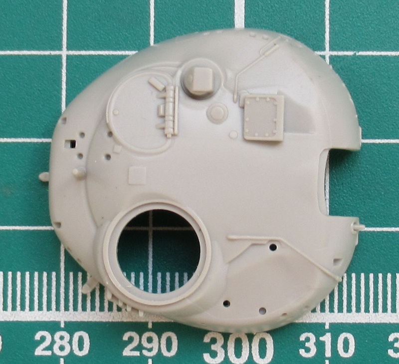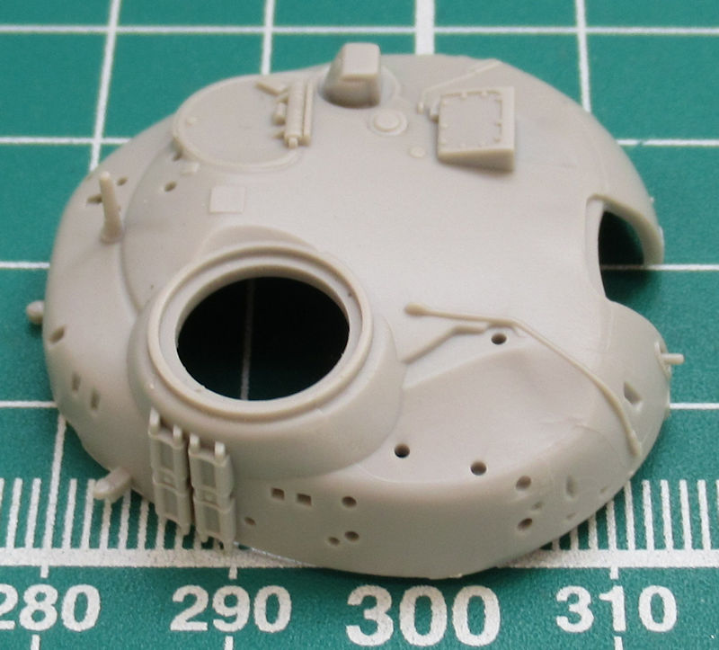 Das Oberteil des Turms ist ein hervorragend modelliertes Teil. Selbst das MG findet man an der richtigen Stelle. Da die Mündung der Kanone hohl ist, das erwartet man danach schon fast. Beim sMG hat man das zwar nicht geschafft aber herausgekommen ist trotzdem eine tolle Nachbildung in 1/72.