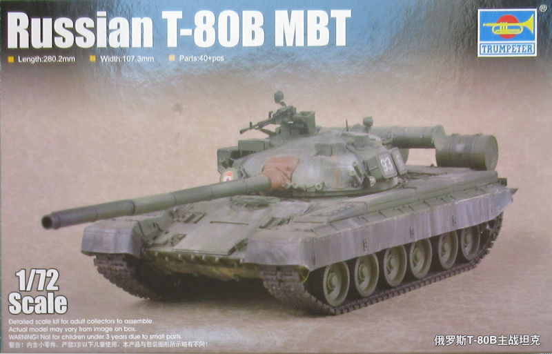 Bausatz: Im Maßstab 1/72 erschien der erste Spritzgussbausatz des T-80 in den 1990er Jahren bei Revell und 2016 legte modelcollect aus China einen hochdetaillierten Bausatz in einigen Versionen für den fortgeschrittenen Modellbauer nach. Nun gibt es einen Gegenentwurf von TRUMPETER im kleinen Maßstab für den nicht so erfahrenen Modellbauer.