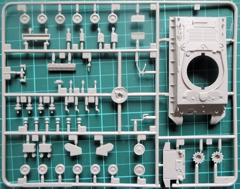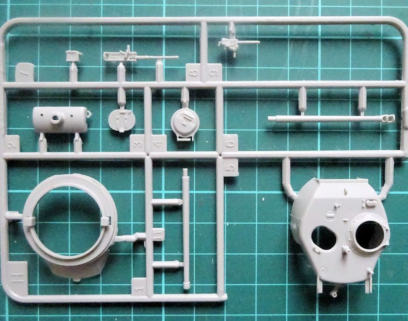 Alle Teile sind sauber wiedergegeben. Es müssen ein paar kleinere Grate entfernt werden. Es liegen drei verschiedene Kanonen bei. Besonders gut ist die Besonderheit des Fahrwerks wiedergegeben.Die Angüsse sind so gewählt das sie so wenig wie möglich stören.