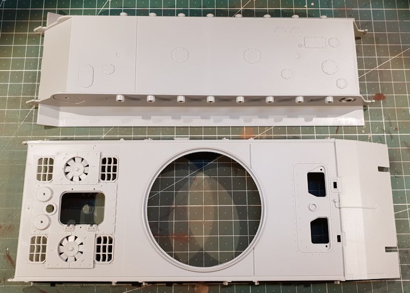 Dabei liegen auch die Kette aus Gummi und ein kleiner Fotoätzteilebogen für die Motorlüfterabdeckungen.