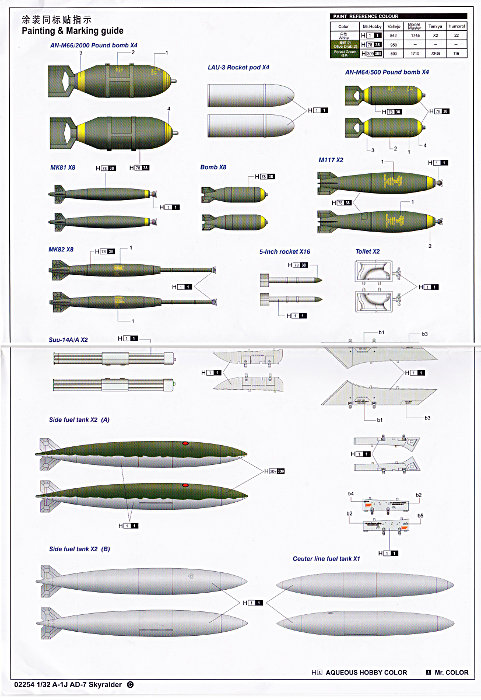 Der Waffensatz umfasst vier Gußäste. Außer den 5-inch Raketen, die für die frühe AD-1 Bausatz vorgesehen waren, können die anderen Abwurfwaffen und Raketen wie LAU-3 Raketenbehälter und SUU-14 A/A angebracht werden. Auch drei Flügeltanks zur Erhöhung der Reichweite liegen dem Bausatz bei.