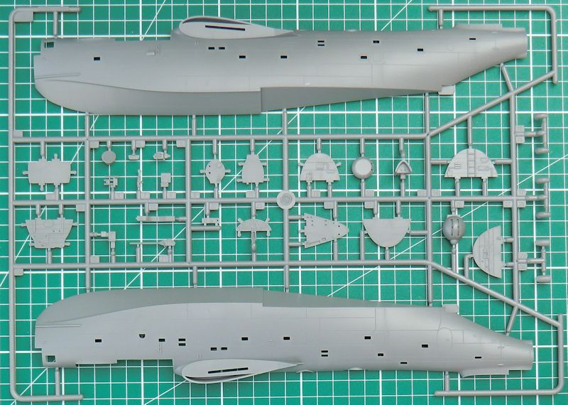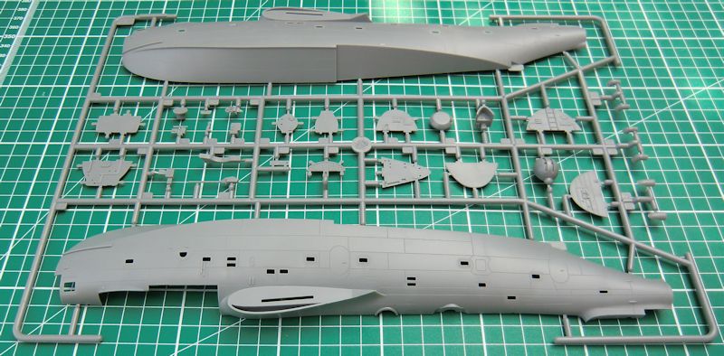 In dem attraktiven typischen Stülpkarton befinden sich gut verpackt sechs graue Spritzlinge mit ca. 200 Einzelteilen, drei Klarsichtrahmen mit 33 Teilen, ein Decalbogen, die mehrfarbige Bemalungsanleitung und die typische Bauanleitung. Schon der erste Blick zeigt: Dieser Bausatz ist voll auf der Höhe der Zeit. Es gibt feine versenkte Strukturen, feine Details und dünne Klarsichtteile.