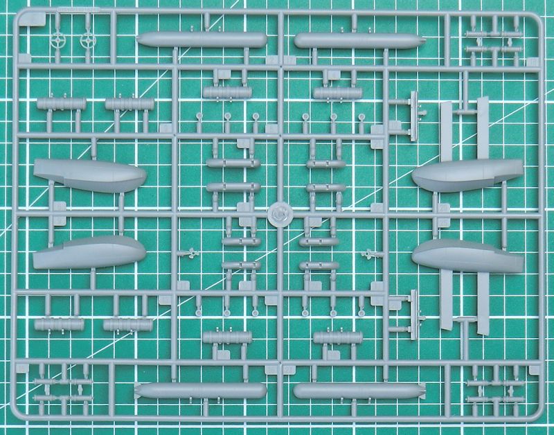Ansonsten gibt es bei allen Rudern scharfe Hinterkanten. Diese können in verschiedenen Positionen montiert werden. Das Hilfsfahrwerk der Be-6 liefert TRUMPETER mit. Damit kann man das Flugboot gut präsentieren. Ein paar Abwurfwaffen ergänzen das Modell.