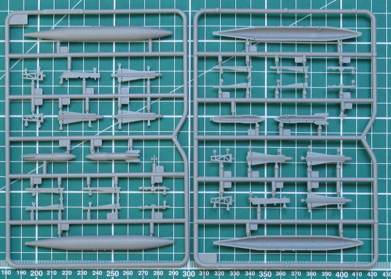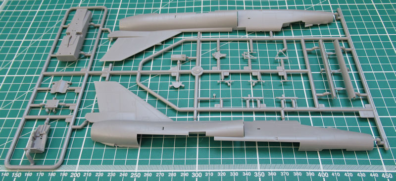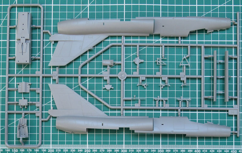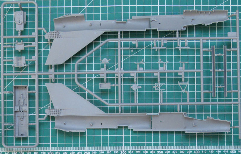 In dem attraktiven praktischen Stülpkarton befinden sich gut verpackt sechs hellgraue Spritzlinge mit 115 Teilen und zwei klare Spritzlinge mit sechs Teilen, ein Decalbogen, die umfangreiche Bauanleitung und eine mehrfarbige Bemalungsanleitung. TRUMPETER hat den Bausatz nicht so sehr zerlegt wie MENG. Es gibt deutlich weniger Teile und es wurde durchaus Wert auf Baubarkeit gelegt. Der Bau beginnt mit dem Schleudersitz. Dieser hat immerhin aufmodelliertes Gurtzeug. Für das Instrumentenbrett gibt es ein Decal. Ansonsten ist das Cockpit sehr gut detailliert.