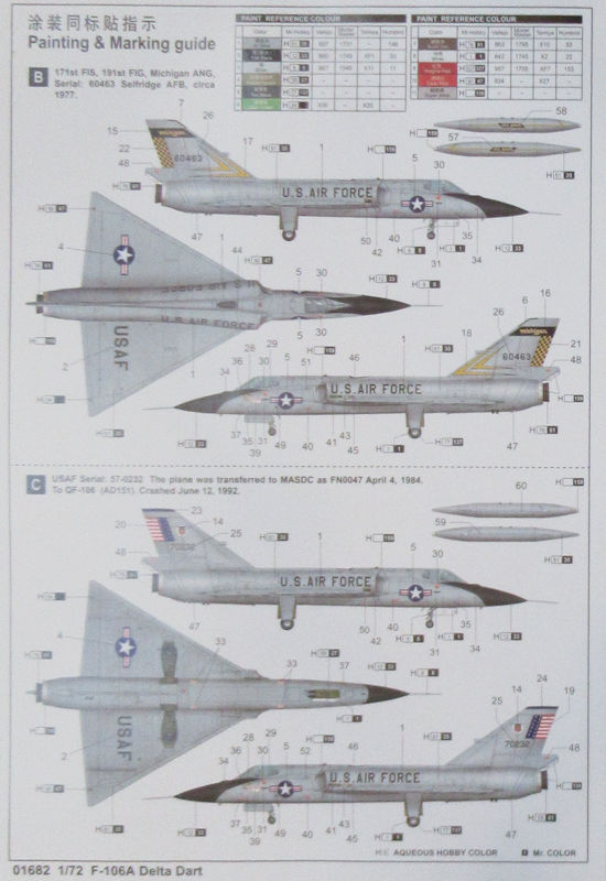 Fazit: TRUMPETER liefert hier einen ordentlichen Bausatz der F-106A in 1/72 für ca. 30 € und liegt damit deutlich preislich unterm MENG-Bausatz. Es gibt einen weiteren Vorteil: TRUMPETER liefert in einigen Wochen auch die F-106B in 1/72!