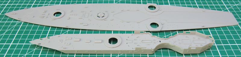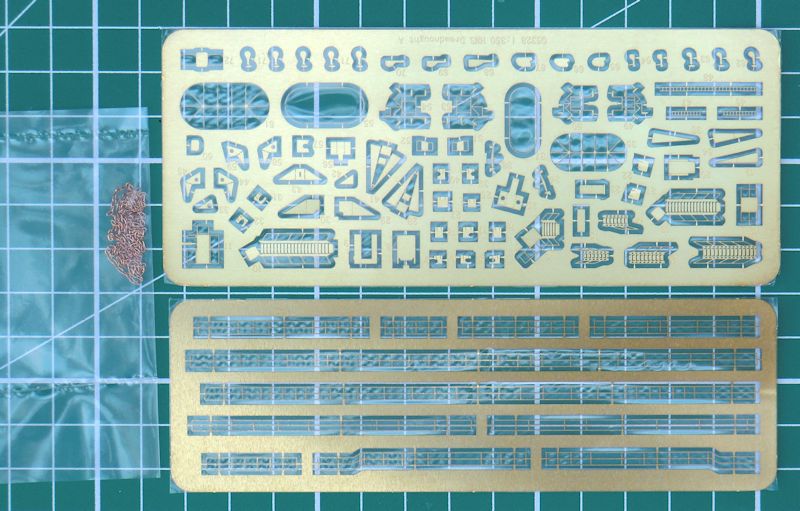 Die Hauptbewaffnung und deren Türme sind recht ordentlich. Das gilt auch für die kleinkalibrigen Rohrwaffen darauf. Bei den Treppen gibt es auch entsprechende Handläufe aus Fotoätzteilen. Insgesamt ist schnell klar, dass es hier ein sehr komplexer Bausatz ist.