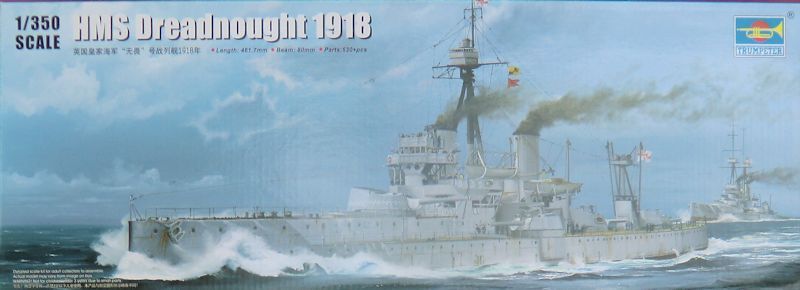 Bausatz: Eigentlich finde ich es ägerlich, wenn Unternehmen Bausatzdopplungen herausbringen. So gibt es doch im Maßstab 1/350 die HMS Dreadnought inzwischen in vier Versionen. Zuerst erschien der Bausatz von Zvezda. Dann folgte der von TRUMPETER der Kit im Bauzustand 1907 und später als Version 1915. Der Bausatz von Zvezda und der von TRUMPETER haben einen ähnlichen Aufbau. So ist das Unterwasserschiff zum Glück auch hier nicht geteilt. Das freut den Standmodellbauer. Für die 1918er Version wurden wieder ein paar Änderungen druchgeführt aber ansonsten gilt das bei den anderen beiden TRUMPETER-Bausätzen geschriebene.