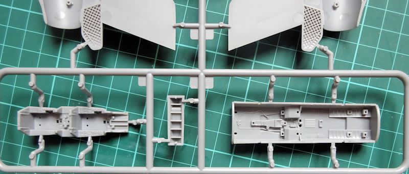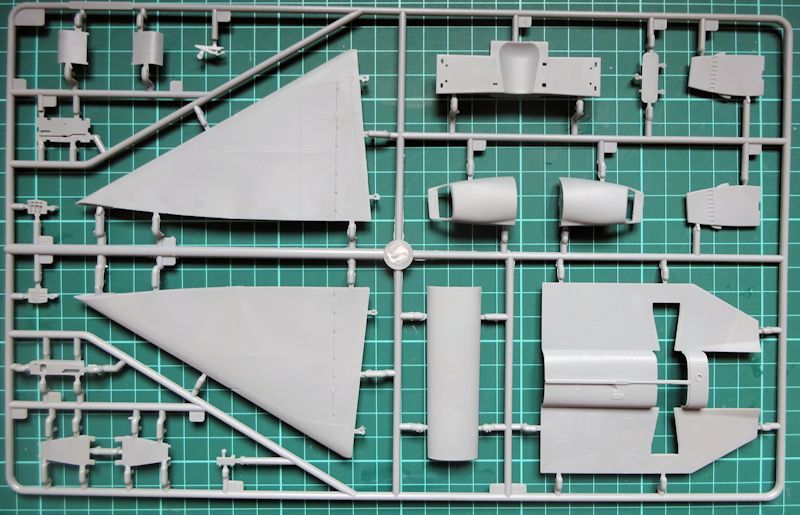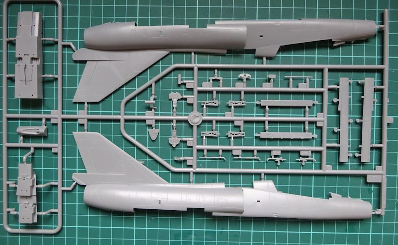 Der Bausatz verfügt über ein gut detailliertes Cockpit. Für das Instrumentenbrett liegen Abziehbilder bei. Die Schleudersitze haben aufgeprägte Gurte. Das Triebwerk ist auch o.k., die Verbindung zum Lufteinlauf noch "old school", d.h. nicht vorhanden.