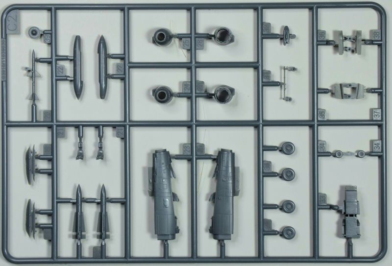 Bausatz: Es handelt sich um einen modernen, hochwertigen Spritzgussbausatz mit feinen Gravuren, Passzapfen, vielen Details und Bewaffnungen. Für verschiedene Varianten, wahrscheinlich auch die F-14A der Vorgängerausgabe, gibt es zwei Nasenvarianten. Die Cockpithaube ist transparent gegossen und liegt in einem Schutzmantel dem Bausatz bei. Jeder Gussrahmen hat eine eigene Verpackung, in der die sensiblen Teile ebenfalls extra ummantelt sind! Die Bauanleitung ist verständlich.