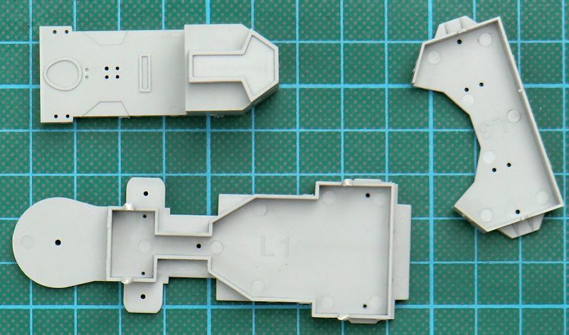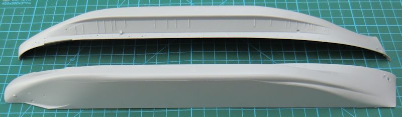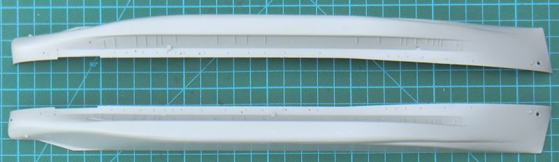 Die beiden Rumpfhälften sind sehr gut getroffen. Beim Zusammenbau werden die Rumpfteile innen durch fünf Teile stabilisiert. Dann kommt das Deck oben drauf. Die beiden Kiele werden wie die beiden Schiffsschrauben mit Antrieb von außen separat angeklebt.