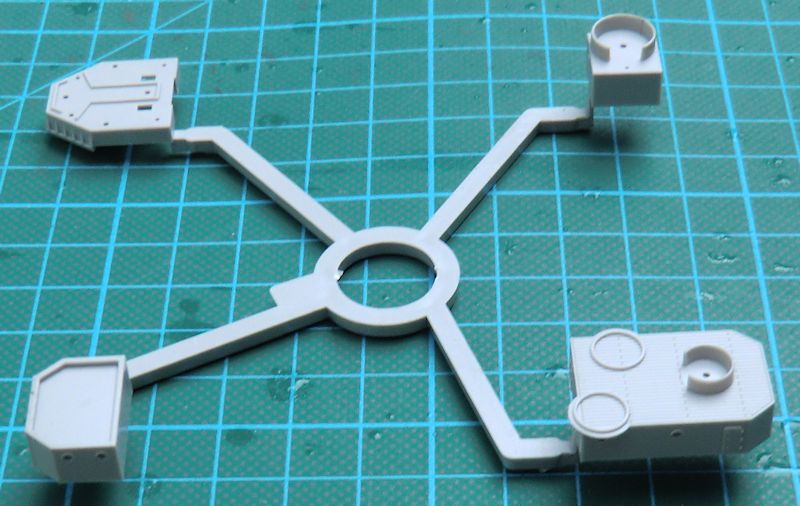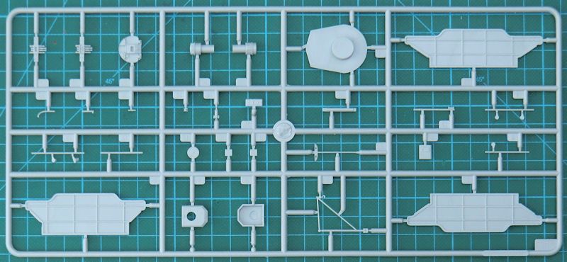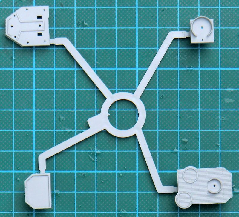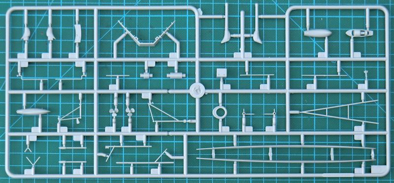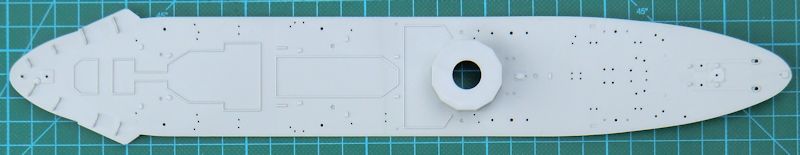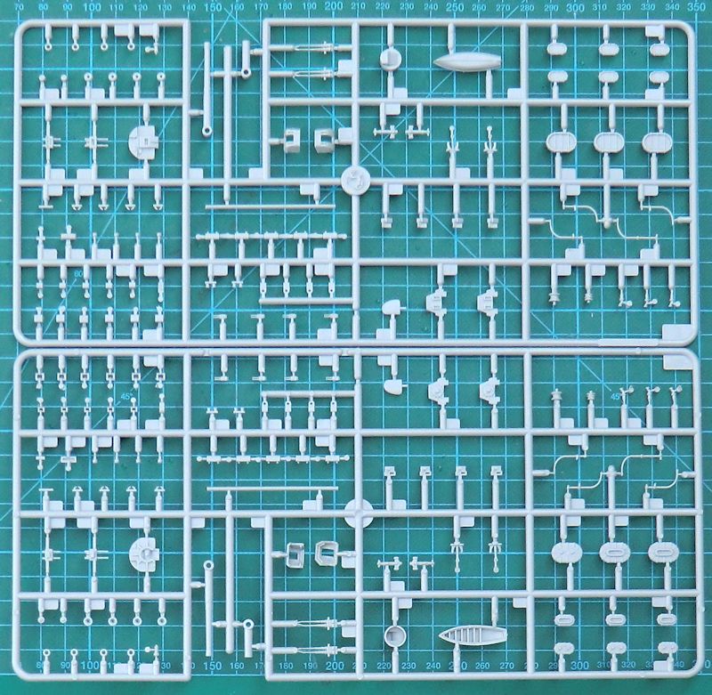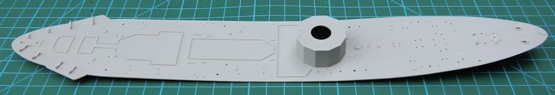 Bei der Hauptbewaffnung gibt es alternativ die Ledermanschetten. Mittels Fotoätzteilen werden die Relings dargestellt. Der Schornstein entsteht aus sechs Teilen. Hierbei ist das Abschlussteil aus Metall.