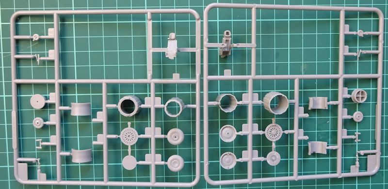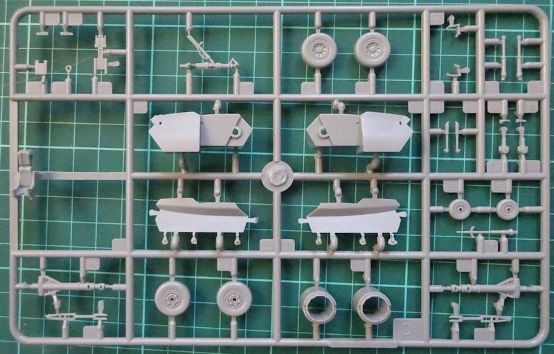 Im gutgefüllten Karton befinden sich sechs graue Gussäste und ein Klarsichtast mit ca. 110 Teilen, eine Ätzplatine, der Abziehbilderbogen und die Bauanleitung. Die Teile sind sauber graviert und gespritzt.