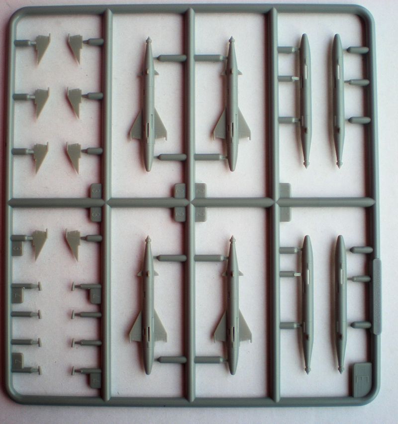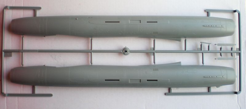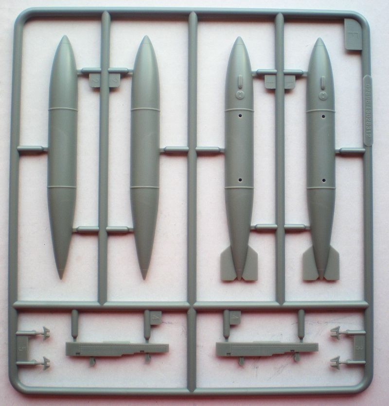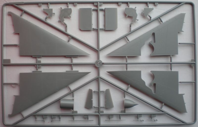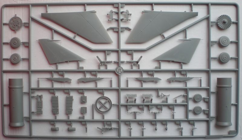 Alle Teile zeichnen sich durch feine Oberflächengravuren aus. Das Seitenleitwerk macht einen stimmigen Eindruck. Alle Klappen und Ruder liegen als Extrateil bei. Die Rumpfform des Originals kommt gut rüber. Für die Bestückung mit Außenlasten liegen vier RS-2US und zwei Zusatzbehälter bei. Das sicherlich benötigte Gewicht kann problemlos im Einlaufkegel untergebracht werden.