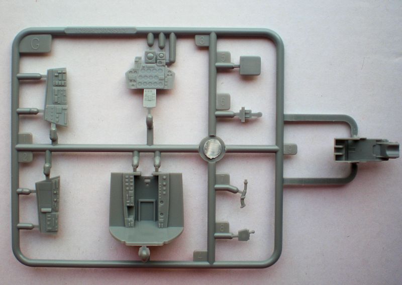Bausatz: Im Karton liegen separat verpackt sechs graue und ein Klarsichtrahmen mit ca. 95 Teilen sowie ein Decalbogen. Das Cockpit besteht aus 10 Teilen. Für die Instrumente liegt ein Decal bei. Der Schleudersitz ist ebenso wie der Fahrwerkbereich ausreichend detailliert. Das Kabinendach ist zweiteilig.