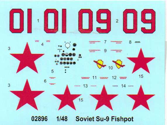 Bemalungsvarianten: Der kleine Decalbogen ist sauber gedruckt und bietet die Abzeichen für zwei naturmetallfarbige Su-9.