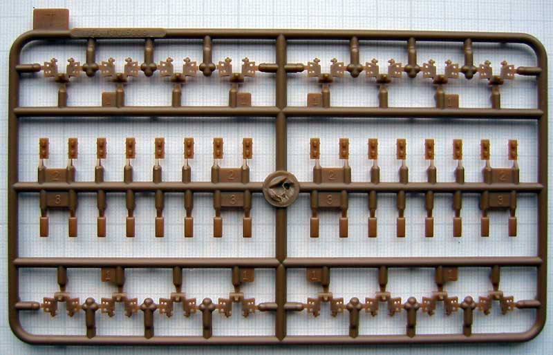 Die beiliegende Einzelgliederkette besteht pro Kettenglied aus jeweils zwei Teilen und lässt sich mit etwas Geschick voll beweglich bauen. Die Abmessungen entsprechen Maßstäblich dem Vorbild und weisen einen hohen Detailierungsgrad auf.