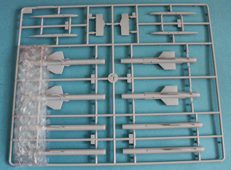 Der separate Einlaufring hat eine sehr schön dünne Kante und keine Auswerfermarkierung. Die leicht ovale Form stimmt nach meiner Meinung voll mit dem Vorbild überein. Der zweigeteilte Einlaufkanal wird etwas mehr Arbeit benötigen, alles aber im Bereich des Vertretbaren. Der Auslassbereich ist sinnvoll aufgeteilt. Das Innenrohr ist jeweils einteilig, keine schwierige Naht zum Verspachtel und schleifen. Die beiden Düsen sind gut detailliert und haben eine schön dünne Kante. In einer separaten Box finden wir die Klarsichtteile, die beiden Ausführungen des Seitenleitwerkes, die drei Reifen, den Film für die Instrumente sowie zwei Hauptfahrwerksbeine aus Metalldruckguss. Diese können alternativ zu Plastikteilen verbaut werden, was beim zu erwartenden Gewicht des fertigen Modells sicherlich sinnvoll ist. Die Klarsichteile für die Cockpithaube bieten keinerlei Punkte zur Kritik. Des Weiteren liegen die Suchköpfe der Raketen ebenfalls in klarer Ausführung vor. Das sorgt sicherlich dann für ein realistisches Erscheinungsbild. Wenn wir schon bei den Raketen sind, der Modellbauer kann zwischen einem Paar Redtops oder Firestreak wählen, mehr trug der Vertical Twin auch nicht während seiner Karriere. Die sehr dünn gegossenen Finnen der Raketen sind noch mal separat mit Luftpolsterfolie gegen Beschädigungen geschützt.