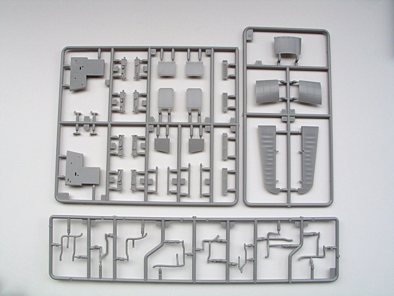 Die Läufe der Maschinengewehre und die Gurtzuführungen hätten etwas mehr Detaillierung vertragen können. Wie bei Trumpeter üblich sind alle Ätzteile, Klarsichteile ,Gummireifen und das Auszuscheidende Cockpitfilm separat in Klarsichttüten verpackt und in eine Pappschachtel gelegt worden. Auf den Ätzteilbogen finden sich die Gurte für den Pilotensitz und die Gurtschnallen. Auch ein Armaturenbrett liegt dem Ätzteilsatz bei.