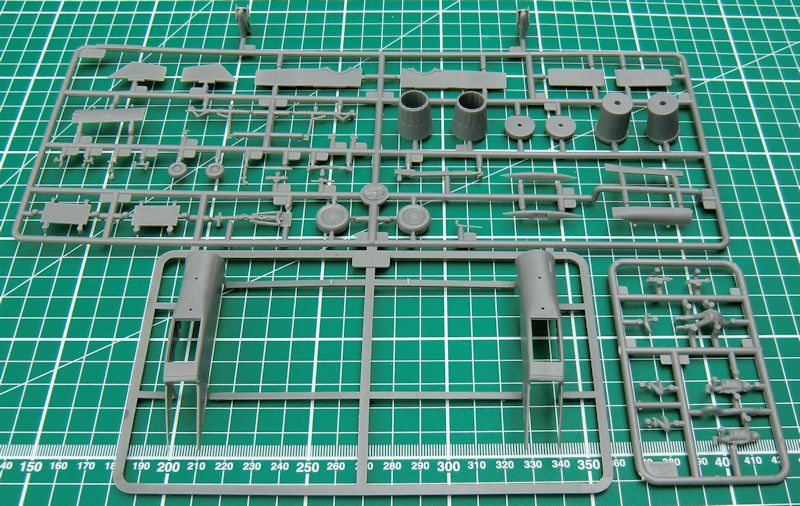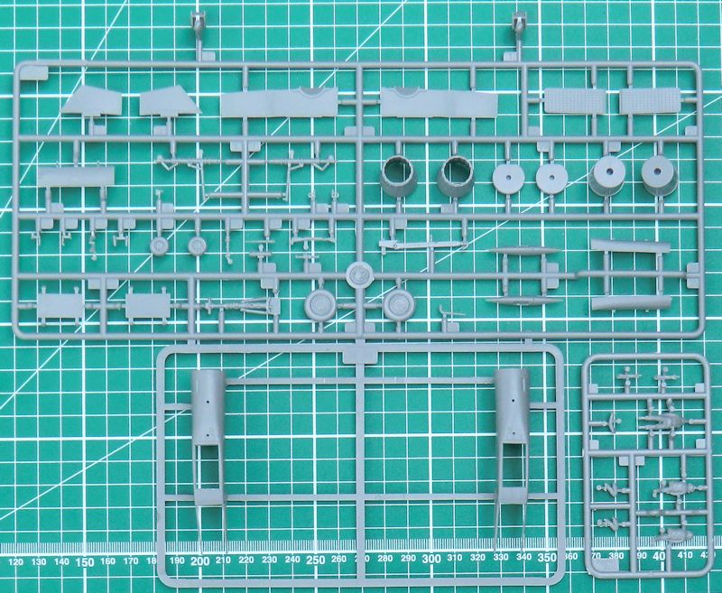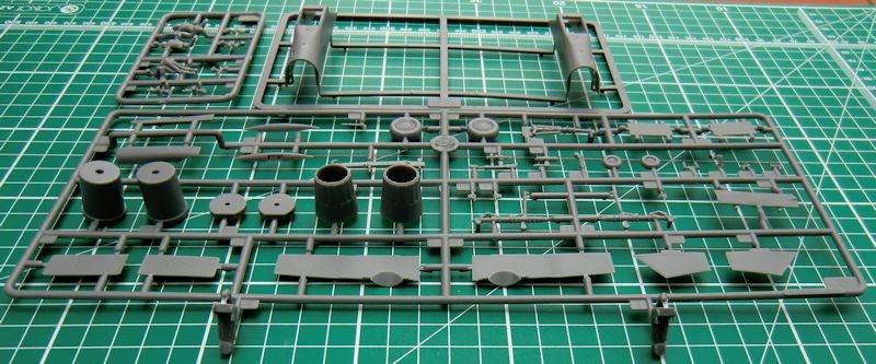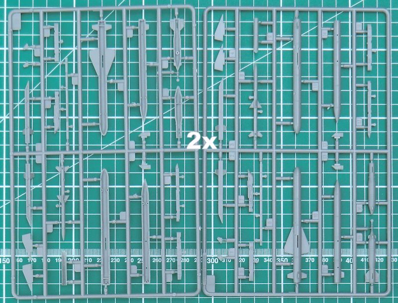 Gut verpackt befinden sich 18 hellgraue Spritzlinge bzw. Großbauteile, ein klarer Spritzling, eine Fotoätzplatine, die mehrfarbige Bemalungsanleitung und die Bauanleitung im Karton. Insgesamt sind um die 230 Bauteile zu verbauen. Die Ausführung ist typisch TRUMPETER und das Niveau wird immer besser. Es gibt übrigens zwei Schleudersitze an einem Spritzling…