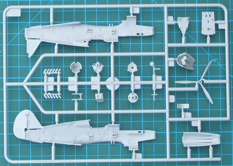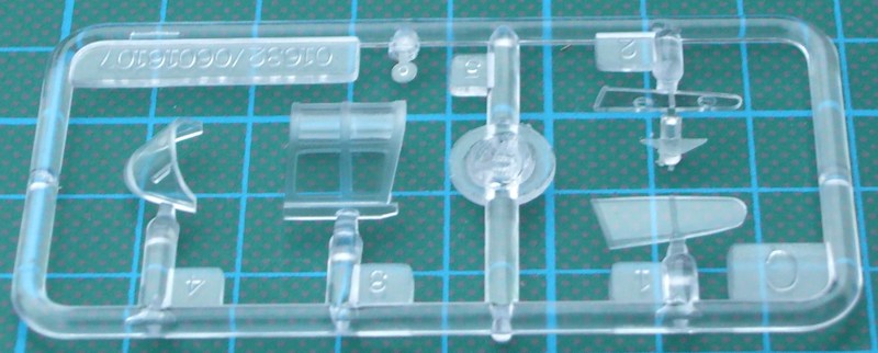 In dem richtigen stabilen Karton befinden sich zwei hellgraue Spritzlinge und ein Rahmen mit den Klarsichtteilen. Weiterhin gibt es einen Decalbogen mit den nötigen Abzeichen sowie die mehrfarbige Bemalungsanleitung.