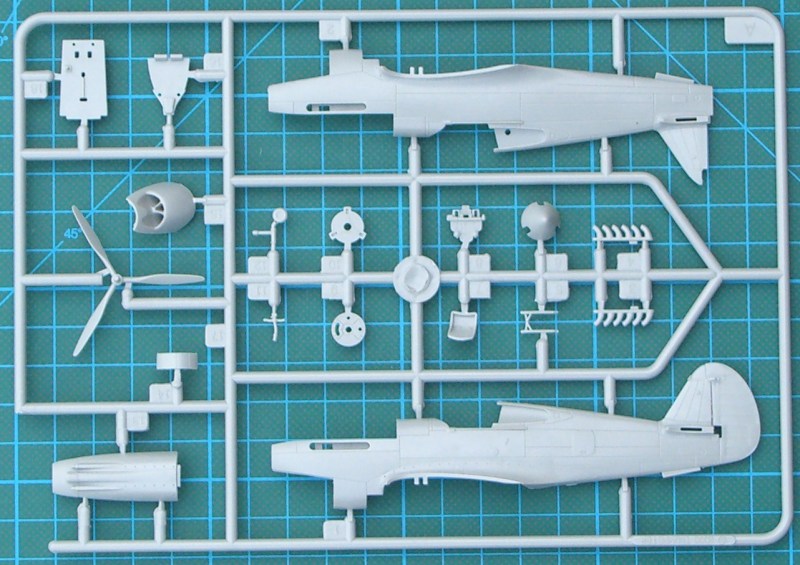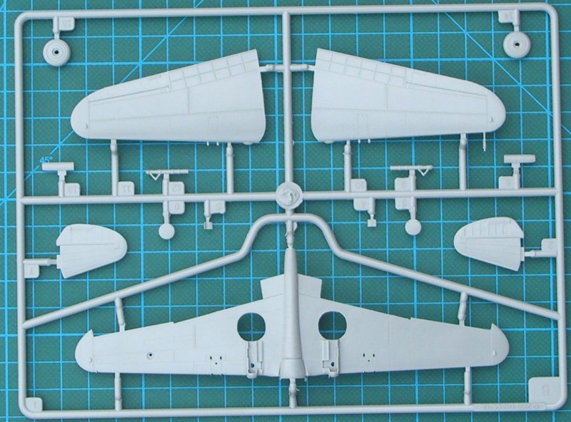Die Spritzgussteile haben sehr feine Gravuren. Weiterhing gibt es noch versenkte Nietenreihen. Diese haben ebenso wie die Gravuren wenig mit dem Vorbild gemein, können das Modell durch geschickte Bemalung ungeheuer beleben. Das Cockpit besteht aus recht wenigen Bauteilen. Für das Instrumentenbrett gibt es zusätzlich zu den vorhandenen Strukturen ein Decal. Hier muss genau und mit Weichmacher gearbeitet werden. Der Sitz kann auf jeden Fall noch ein paar Gurte vertragen. Ansonsten sind die Details im Cockpit eine gute Grundlage.