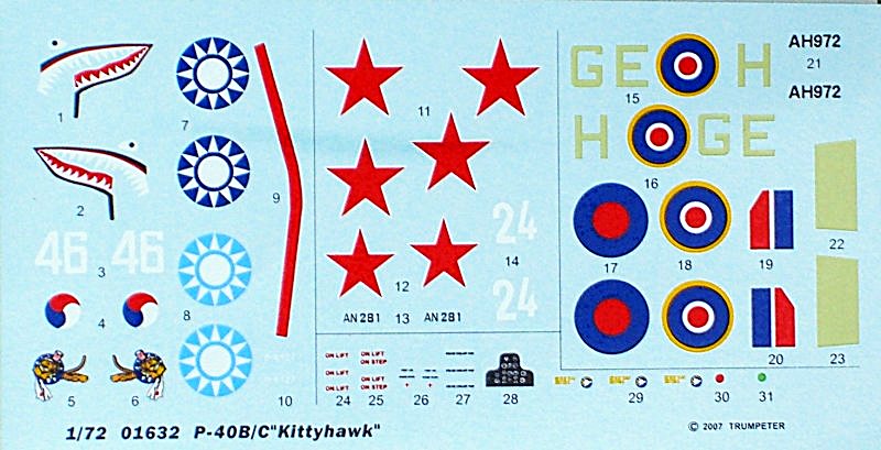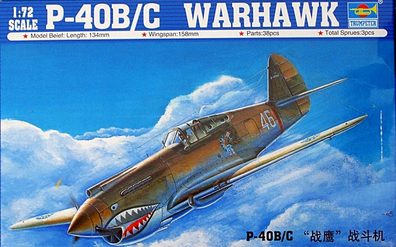 Bausatz: Nachdem sich TRUMPETER mit der P-40 B/C auch schon in 1/48 beschäftigt hat, liegt nun auch der Bausatz in 1/72 vor. Zuvor gab es die P-40B/C nur von Frog/NOVO und von ACADEMY.