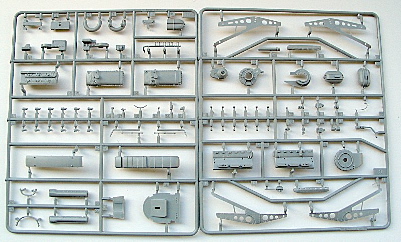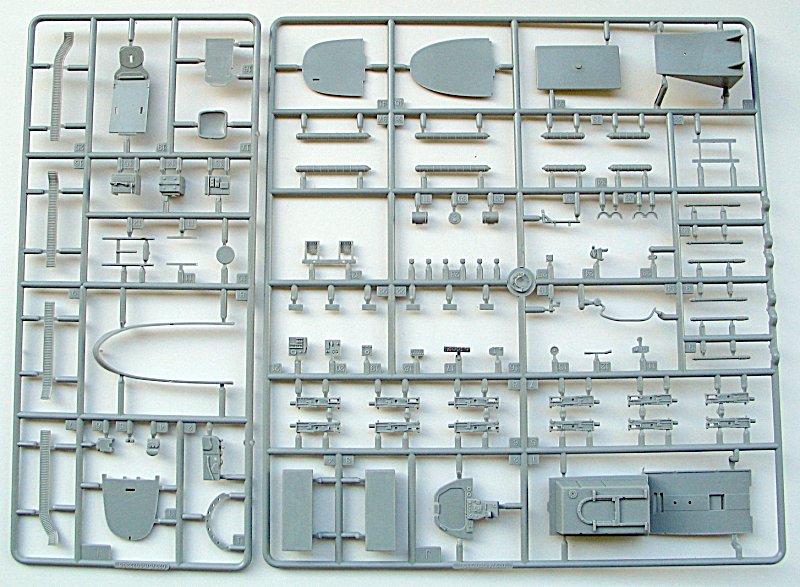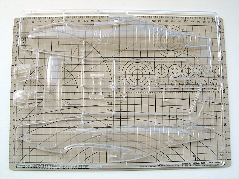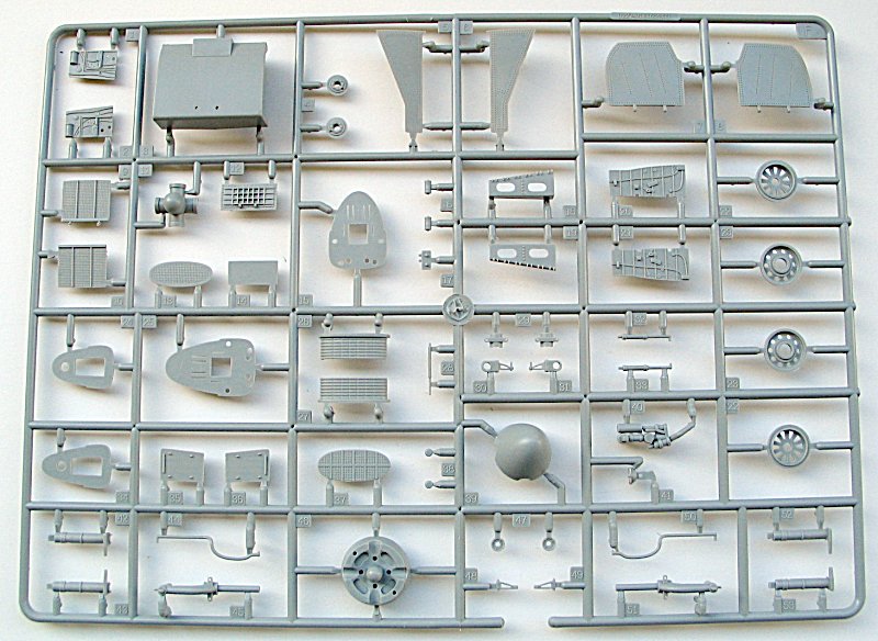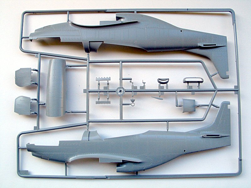 Dem Bausatz liegen wie auch bei der B Variante die Rumpfhälften als Klarsichtteile oder wie gewohnt in undurchsichtigen Polystyrol bei . Da der Bausatz auf eine sehr gute Motornachbildung und weiteren Details im Rumpf zurückgreifen kann ist das eine interessante Möglichkeit das Modell so zubaue. Der Merlinmotor ist sehr gut Nachgebildet worden. Das Cockpit ist gut Detailliert. Für die Instrumentierung des Cockpits liegt ein Trägerfilm bei der durch ein Ätzteil als Instrumentenbrett abgedeckt wird. Auch der Pilotensitz wird durch Ätzteile (Gurte) aufgewertet.