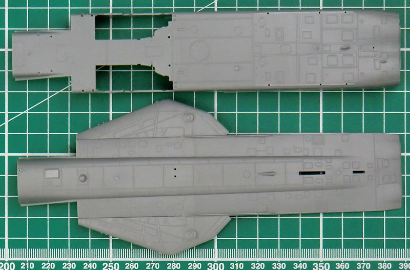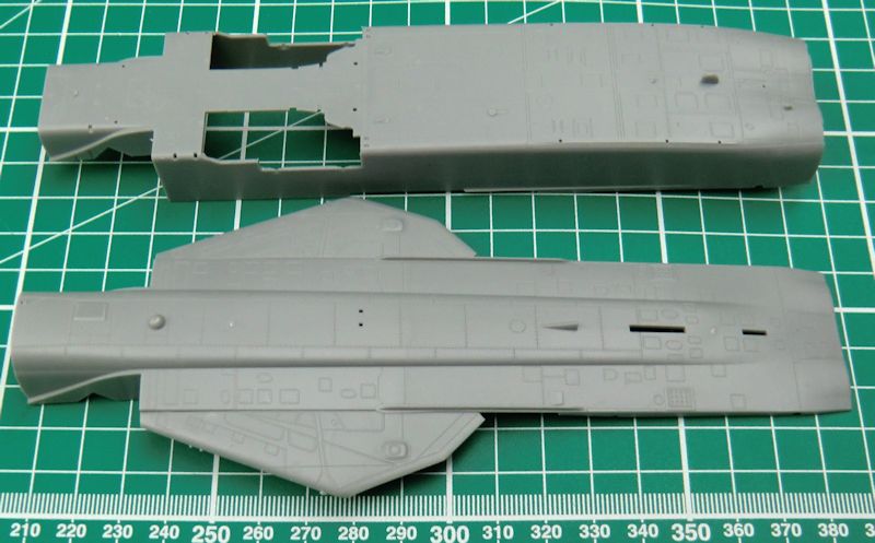 Der Hauptfahrwerksschacht ist recht komplex und entsteht aus einigen Teilen. Bevor der Rumpf zusammengeklebt werden kann müssen noch einige Bohrungen durchbrochen werden.