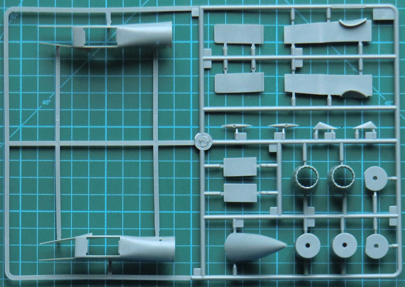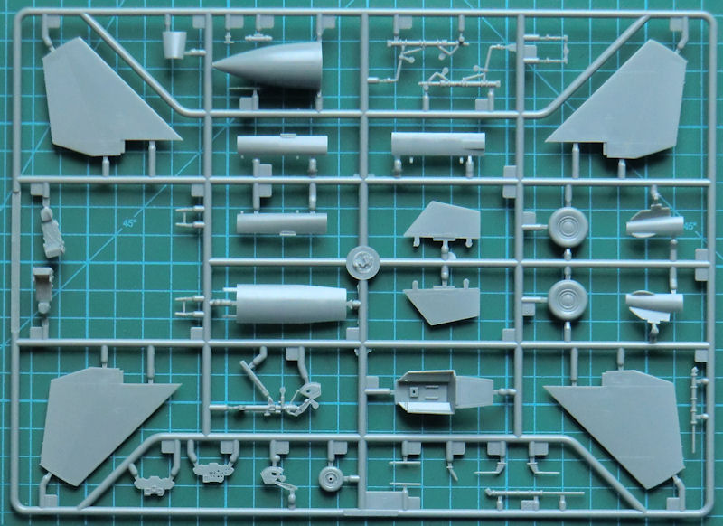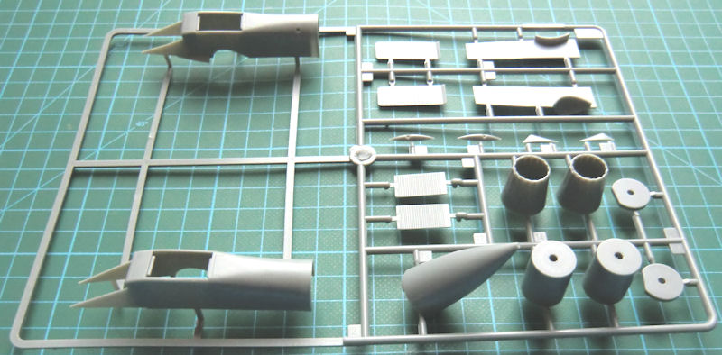 Der Bau beginnt auch hier mit dem Cockpit. Hier gibt es eine Cockpitwanne. Leider hat sie keine weiteren Strukturen, sondern es wird alles mittels Decals dargestellt. Die zwei Schleudersitze besitzen aufmodellierte Sitzgurte. Wer die Haube offen ankleben will, der kann sich beim erhältlichen Zubehör austoben.