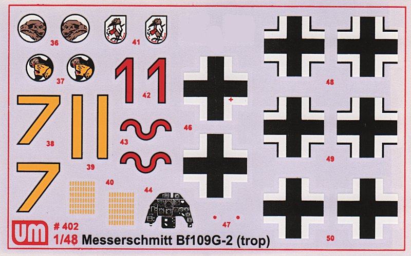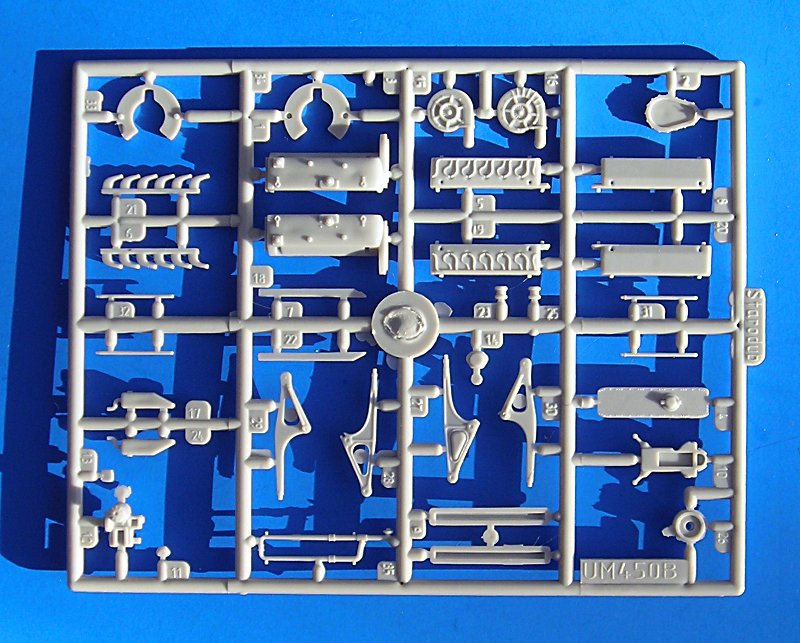 Der Bausatz der Bf 109G ist bei UM schon länger erhältlich. Aus dem Kasten lassen sich so ziemlich alle G-Varianten der Messerschmitt Hundertneun bauen. Das Titelbild zeigt wohl eine Bf 109G-2. Markierungen für diese Maschine sind jedenfalls nicht im Bausatz enthalten. Die Aufteilung ist ähnlich wie bei der Bf 109F von ICM aber insgesamt ist der Spritzguss etwas schlechter. Die Gravurlinien sind dem ukrainischen Bruder recht ähnlich. Alle Teile sind mit reichlich Grat verziert und Auswerfermarken finden sich auch an zum Teil recht ungünstigen Stellen…