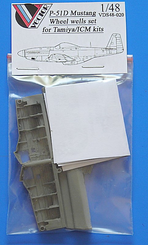 Dieser Satz ist für die P-51 Mustang von Tamiya bzw. ICM gedacht. Die Fahrwerksschächte sind einer der Schwachpunkte der bisherigen Mustang-Modelle auf dem Markt, denn alle lassen den Schacht am hinteren Ende der Federbeinabdeckung abschließen, der Schacht ist hier jedoch offen und führt unterhalb der Beplankung weiter bis zum Hauptholm.